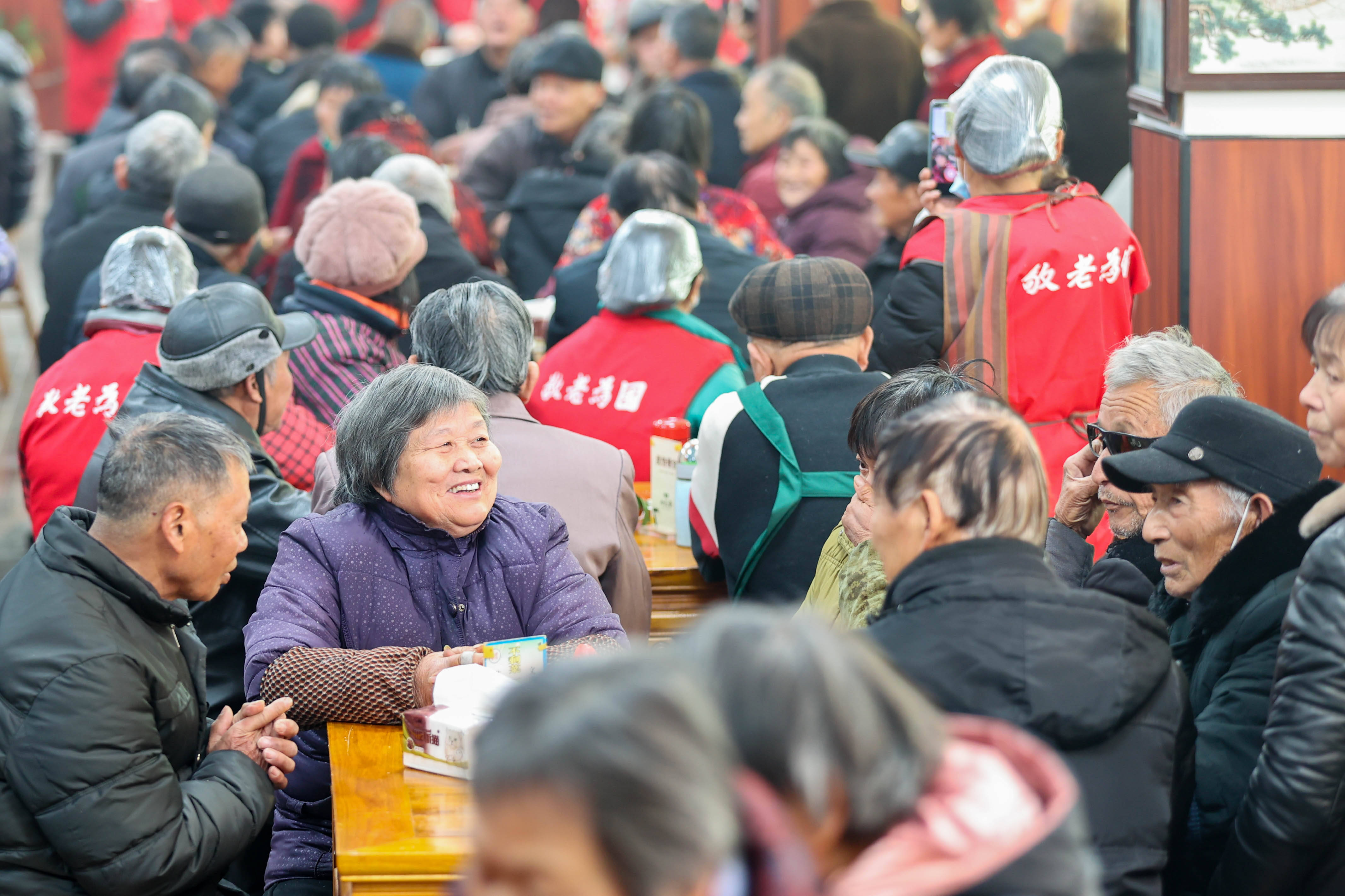 时值寒冬,新安镇孙家桥村的敬老饭堂暖意融融。近日,200多位老年人喜气洋洋地围坐在一起,大家吃着水果、瓜子,等着免费的“年夜饭”开餐。